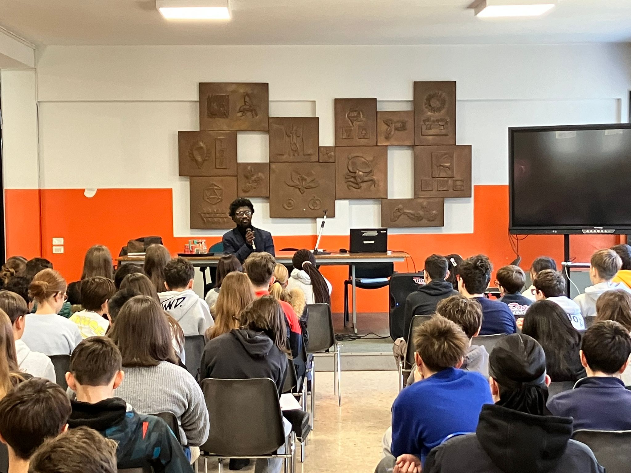 Il 27 novembre le classi terze dei plessi Muttoni e Salerno hanno avuto l’opportunità di incontrare Ibrahima Lo, autore e testimone diretto di un percorso di vita segnato dal viaggio migratorio, dalla resilienza e dal desiderio di costruire un futuro migliore.