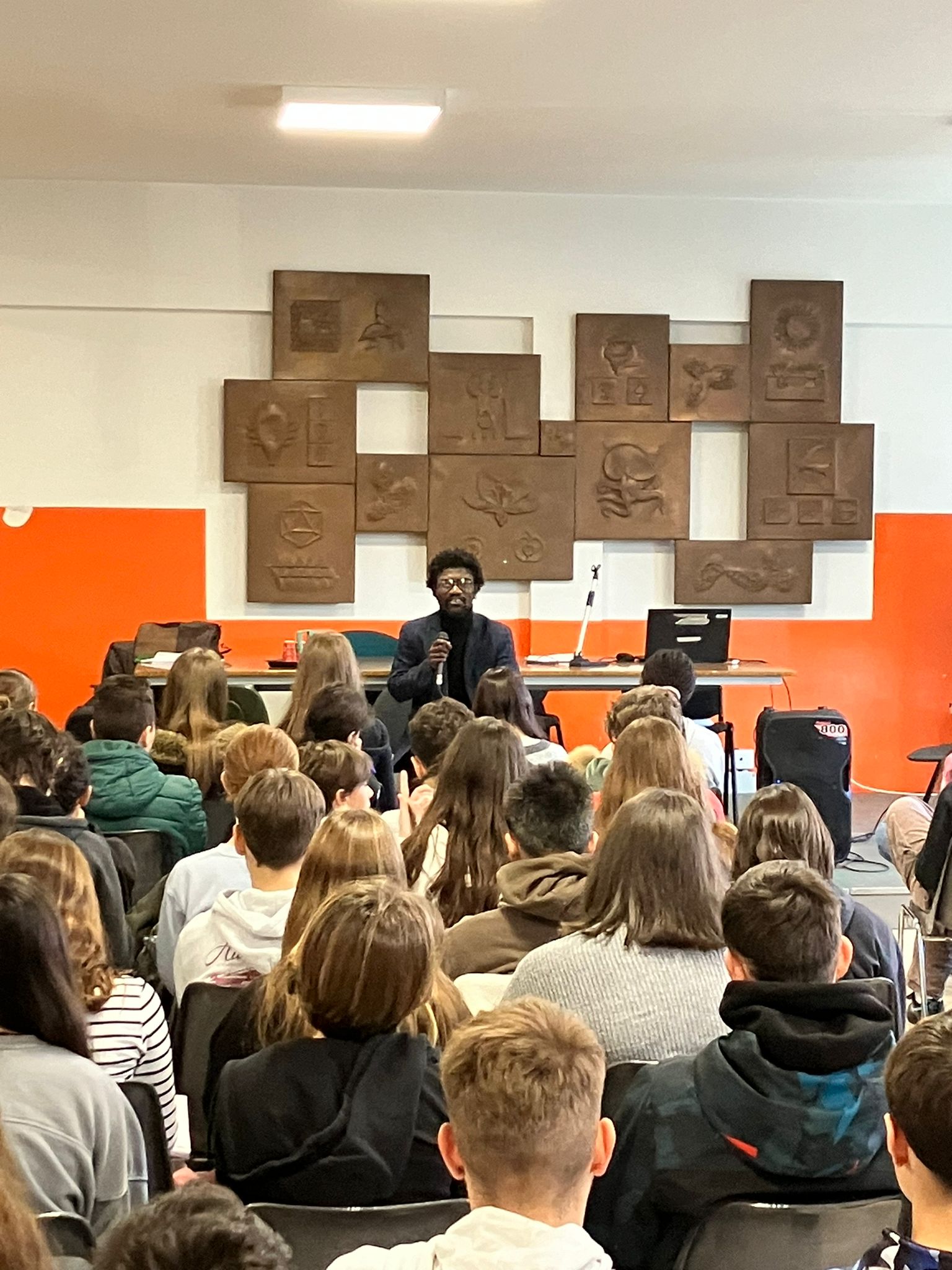 Durante l’incontro, Ibrahima ha raccontato la sua esperienza con grande sincerità e intensità, offrendo ai ragazzi e alle ragazze uno sguardo autentico sulle sfide, le speranze e le motivazioni che spingono molte persone a lasciare il proprio Paese. La sua testimonianza ha favorito un confronto ricco e partecipato: gli studenti hanno posto domande, espresso riflessioni e condiviso emozioni nate dall’ascolto della sua storia.